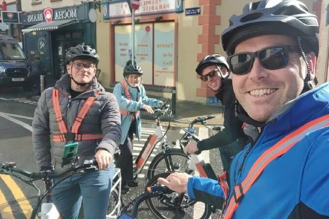 Im Preis enthalten sind topmoderne E-Bikes, alle weniger als ein Jahr alt, smarte Walkie-Talkie-Helme für die Kommunikation während der Fahrt, ein freundlicher lokaler Guide, der jeden Winkel von Galway kennt, Besuche in fünf wichtigen Stadtvierteln inklusive Stopps am Spanish Arch und der Salthill Promenade – dazu frische Luft und genau die richtige Portion Bewegung, bevor es zurück ins Latin Quarter geht.