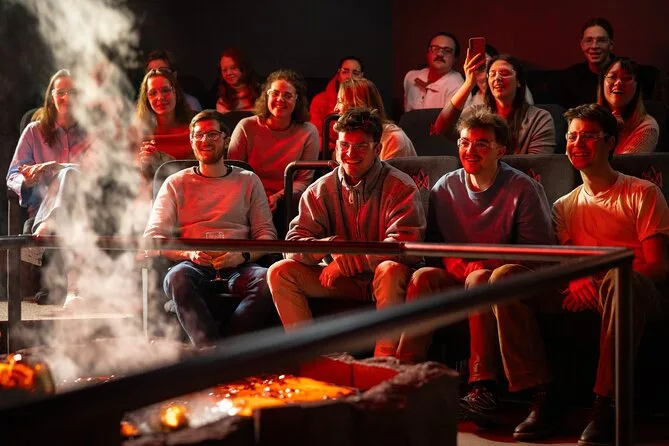 Dein Besuch umfasst den Eintritt zu Reykjaviks einziger Live-Lava-Show mit einem Einführungsvideo zum Vulkanismus Islands. Du triffst lokale Moderatoren, die echte glühende Lava vorführen und während der offenen Fragerunde alle Fragen beantworten. Für Classic-Tickets gibt es Schutzbrillen. Die Premium Experience bietet zusätzliche Extras für Gäste ab 13 Jahren, findet aber im Obergeschoss statt und ist nicht barrierefrei.