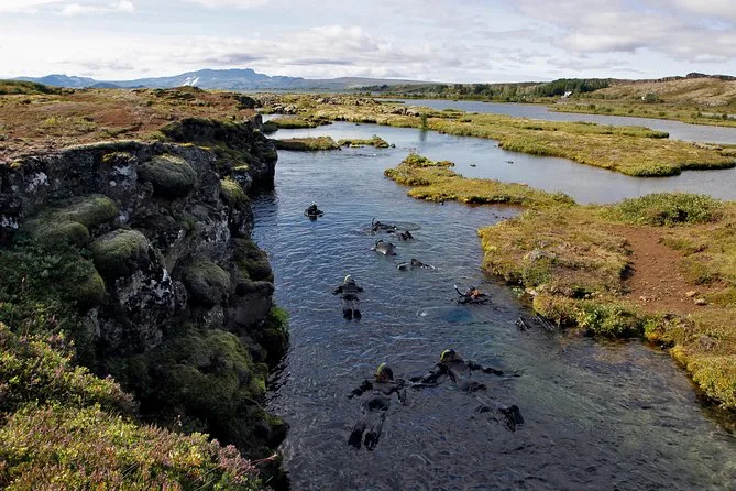 Du schwebst durch Silfras surreale Spalte in Þingvellir, schwimmst zwischen Kontinenten in Wasser, das fast zu klar wirkt, um echt zu sein. Mit einem lokalen Guide, der sich um die Ausrüstung kümmert, und Abholung vom Hotel in Reykjavik, wärmst du dich danach mit Kakao und Keksen auf – und hast garantiert ein paar Lacher über deine Trockenanzug-Tanzmoves.