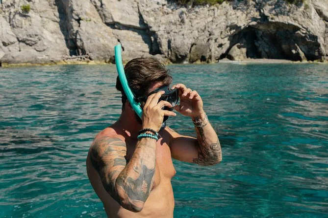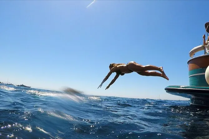 Ich dachte, ich hätte genug Blau für den Tag gesehen, doch dann bogen wir um eine Ecke – etwa bei Bagni della Regina Giovanna – und das Wasser änderte sich wieder: tiefer, klarer oder plötzlich voller silberner Fische. Marco zeigte auf eine verfallene römische Villa auf den Felsen und erzählte Geschichten von alten Türmen und Piraten. Sein Englisch war gut, aber manchmal suchte er nach Worten, was mich noch aufmerksamer zuhören ließ. Wir machten Halt zum Schwimmen bei Li Galli – dort sollen früher Sirenen die Seeleute in den Tod gelockt haben. Das Wasser war anfangs kalt, dann aber genau richtig, und ich hörte irgendwo in der Nähe auf einem anderen Boot Lachen.