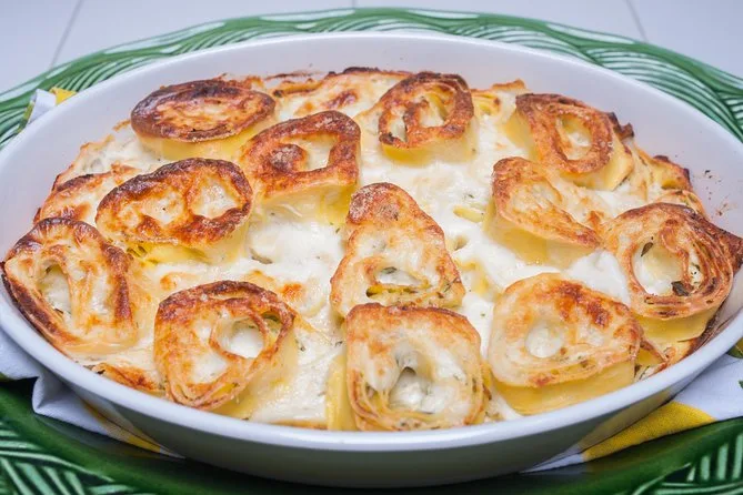 Sie erhalten alle Getränke (Wasser, Wein, Kaffee), eine offizielle Cesarine-Einkaufstasche für den Marktbesuch, eine geführte Tour über den lokalen Markt von Ancona sowie ein dreigängiges Mittag- oder Abendessen (Vorspeise, Pastagericht, hausgemachtes Tiramisu), das Sie mit anderen Gästen teilen, die italienisches Essen genauso lieben wie Sie.