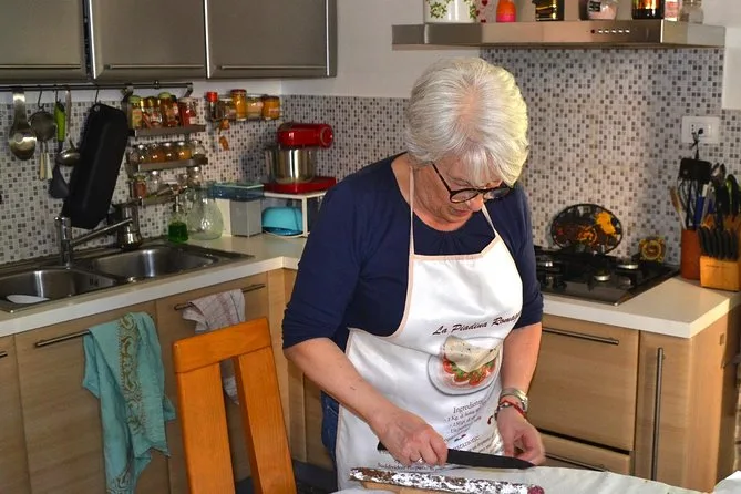 Dein Tag umfasst einen privaten, praktischen Kochkurs mit Giovanna in ihrem Zuhause in Bologna, alle Zutaten und Steuern inklusive, dazu ein hausgemachtes Essen mit traditionellen Pasta-Gerichten und regionalen Snacks, begleitet von lokalem Wein, bevor du wieder in die Straßen der Stadt aufbrichst.