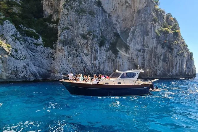 Dein Tag beginnt mit der Abfahrt vom Hafen Sorrent, geführt von einem erfahrenen Skipper, der deine kleine Gruppe entlang der Küste zu Highlights wie Marina Grande und antiken römischen Ruinen steuert. Schwimmwesten und Schnorchelmasken stehen für die Schwimmstopps bei Capris Grotten und den Faraglioni-Felsen bereit. An Bord gibt es Getränke wie Softdrinks, Wasser, Bier, frisches saisonales Obst und eine Flasche Prosecco. Außerdem gibt es eine Frischwasserdusche und Toiletten, bevor es am Nachmittag zurück nach Sorrent geht.