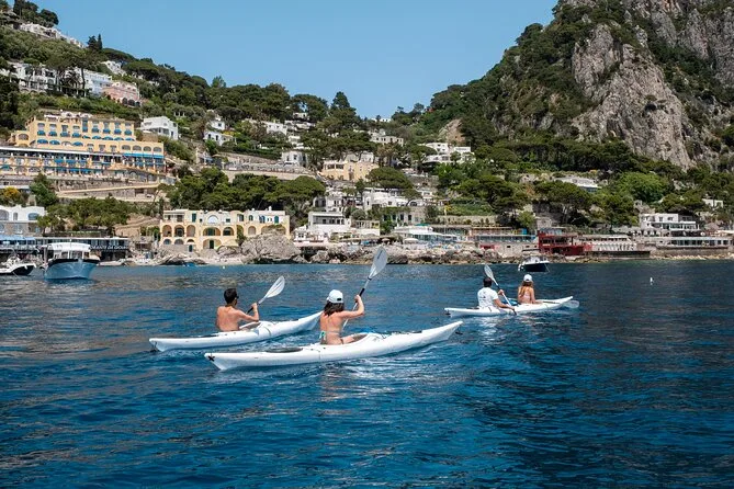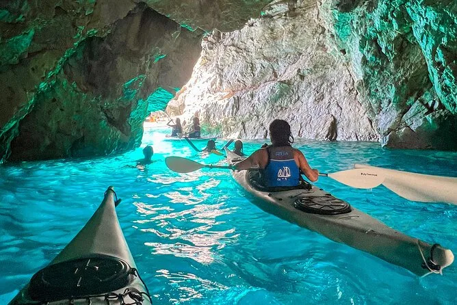 Dein Tag beinhaltet die komplette Kajakausrüstung – Kajak, Paddel, Schwimmweste – eine kurze Sicherheitseinweisung in Marina Piccola, sichere Gepäckaufbewahrung im Shop während der Tour sowie GoPro-Fotos, die während der Tour gemacht und dir kostenlos zugeschickt werden.