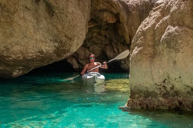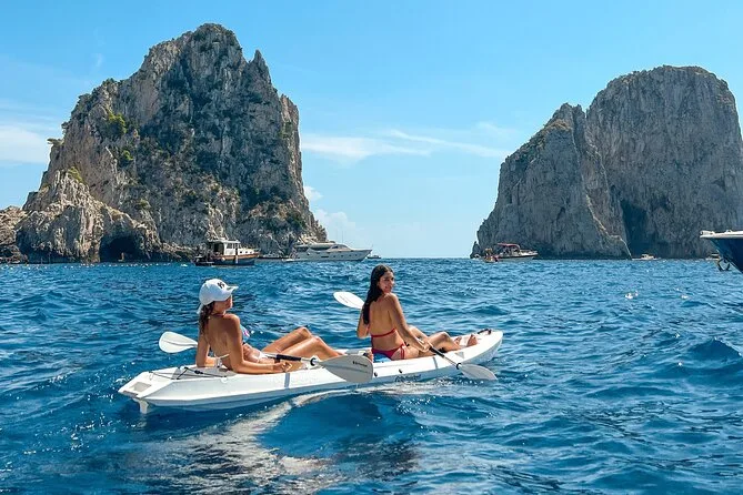 Entdecke Capris dramatische Küste mit dem Kajak, geführt von einem Einheimischen. Erkunde Meereshöhlen und versteckte Strände, die sonst niemand erreicht. Schwimme im klaren Wasser, lausche Inselgeschichten und erhalte kostenlose GoPro-Fotos. Perfekt für Anfänger – bring einfach Neugier mit.