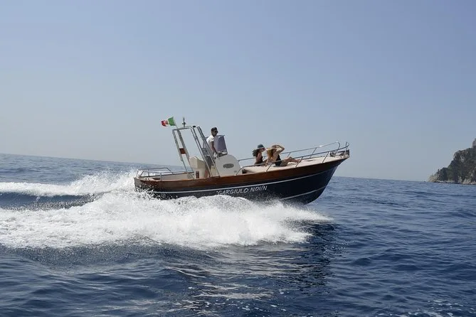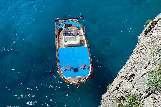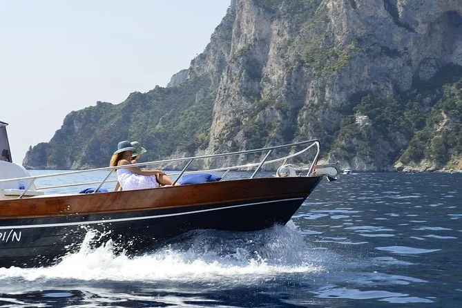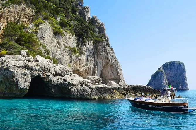 Entfliehe den Menschenmassen auf Capri bei einer privaten Bootstour mit eigenem Skipper. Entdecke Meeresgrotten, fahre durch den Faraglioni-Bogen und tauche ein in leuchtende Höhlen wie die Blaue Grotte (Eintritt extra). Schwimme im klaren Wasser oder genieße ein kühles Getränk, während du die wildesten Ecken der Insel umrundest – hinter jeder Ecke wartet ein neues Abenteuer.