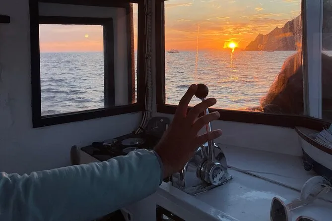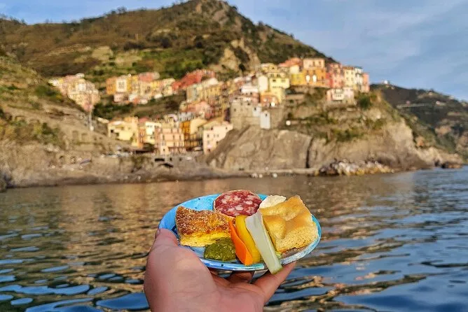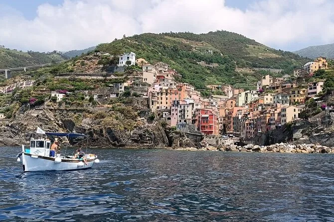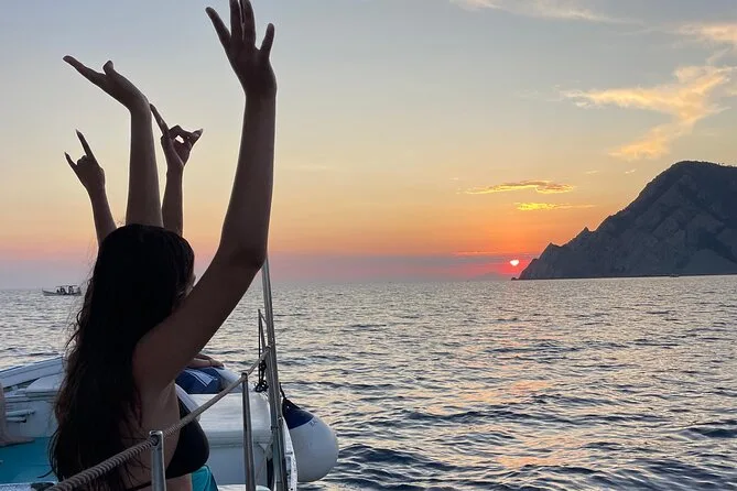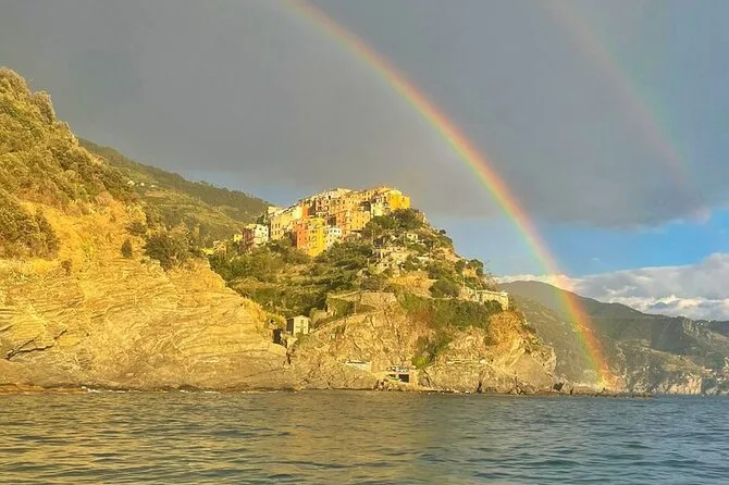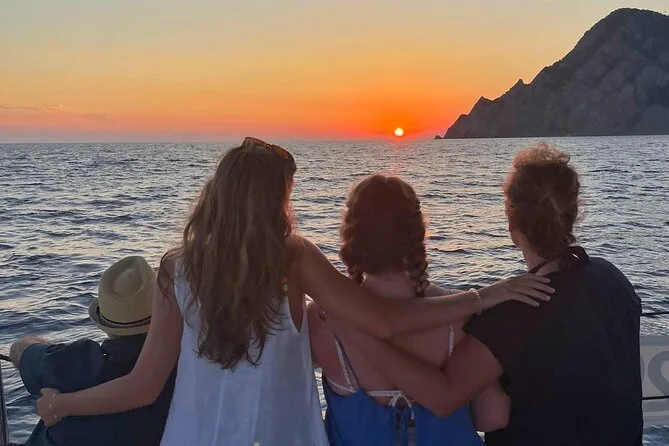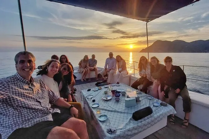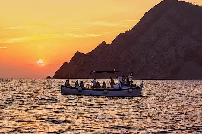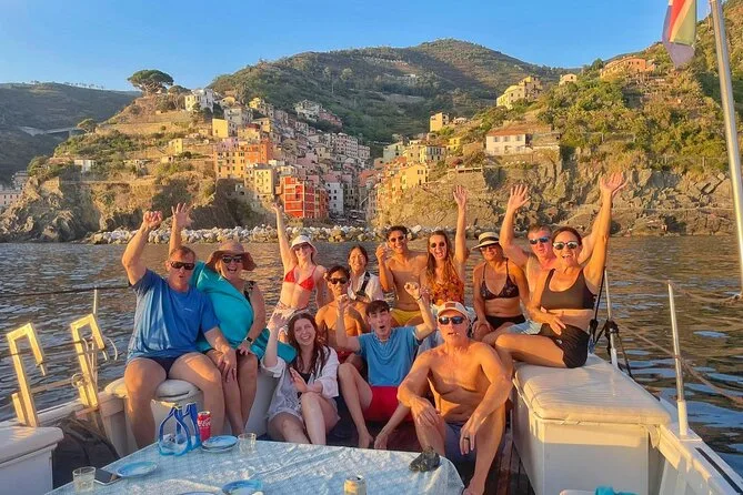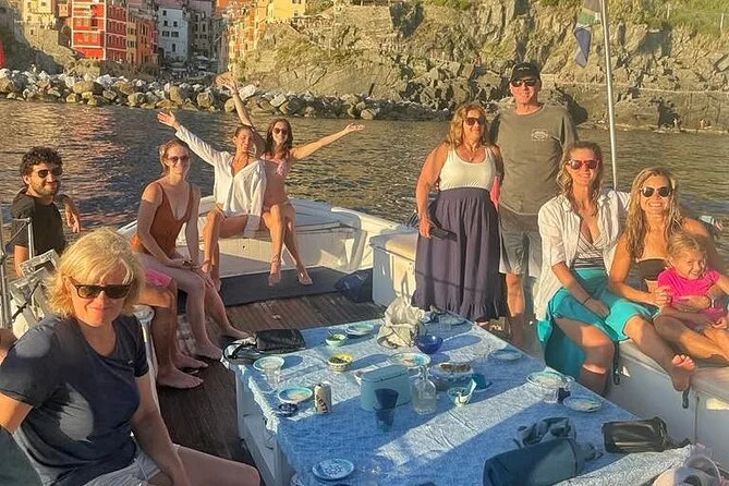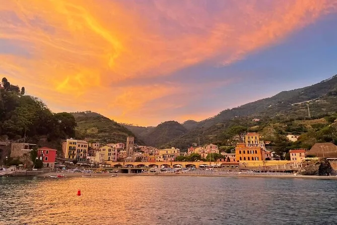 Genieße eine Bootsfahrt bei Sonnenuntergang entlang der Cinque Terre ab Monterosso, mit kleinen Badepausen in klaren Buchten bei Manarola und regionalen Snacks mit Prosecco. Lokale Guides erzählen echte Geschichten, während du Vernazza, Corniglia und Riomaggiore vom Wasser aus siehst – und am Ende den Himmel über Punta Mesco bewunderst.
