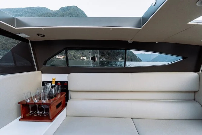 Dein Tag beinhaltet die kostenlose Abholung in Argegno, Lenno, Laglio oder Lezzeno (andere Orte gegen Aufpreis), die komplette Fahrt auf einem beheizten Privatboot mit schließbarem Dach für wetterbedingten Komfort; dazu Wasser und eine Flasche Prosecco zum Teilen, während du an berühmten Villen und Dörfern entlang des Comer Sees vorbeigleitest, bevor du zum Ausgangspunkt zurückkehrst.