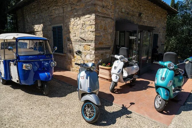 Dein Tag beinhaltet Hin- und Rückfahrt von zentral Florenz, Helm und Sprit für deine Vespa- oder elektrische Topolino-Tour durch Chianti, geführte Stopps in Orten wie Impruneta mit Terrakotta-Werkstätten, Zugang zu bekannten Weinkellern mit Verkostungen von Wein und Olivenöl sowie ein authentisches toskanisches Mittagessen, bevor es bequem zurückgeht.