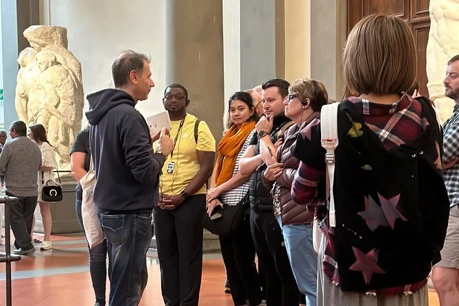 Die ganze Tour fühlte sich an, als würde man mit einem alten Freund unterwegs sein, der wirklich Bescheid weiß – warum die Medici so wichtig waren oder wie Florenz sich in der Renaissance neu erfand. Zwischendurch gab Paolo uns kleine Funkgeräte, damit wir ihn trotz Trubel gut hören konnten; meins rutschte zwar immer wieder vom Ohr, aber es funktionierte super. Ich denke noch oft daran, wie ich vor David stand und mir vorstellte, wie Michelangelo jahrelang an diesem riesigen Marmorblock arbeitete. Also ja – wenn du einen Tag in Florenz suchst, bei dem du wirklich Teil der Geschichte bist (und nicht ewig draußen warten willst), ist diese David-Tour ohne Anstehen genau richtig.