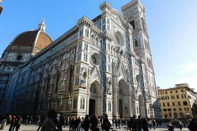 Du kommst ohne Warteschlangen in den berühmten Duomo von Florenz, erkundest geheime Dachterrassen mit einzigartigen Ausblicken und entdeckst Renaissance-Meisterwerke mit einem Experten. Nach Baptisterium und Museum kannst du Giottos Glockenturm flexibel alleine erklimmen – so lange, wie deine Beine tragen.