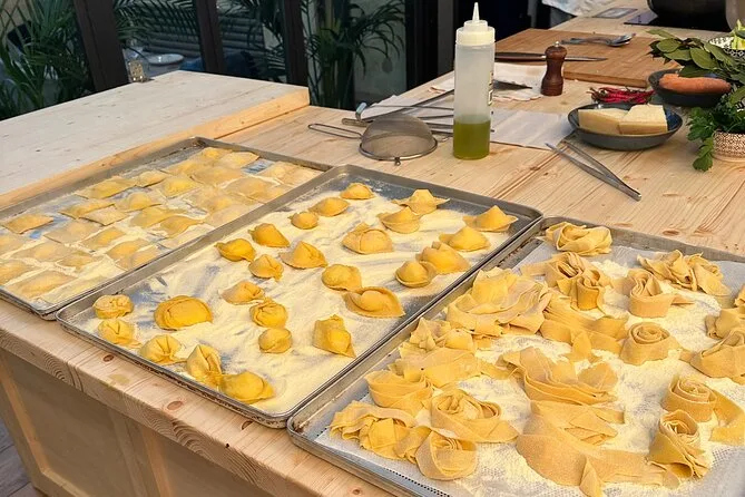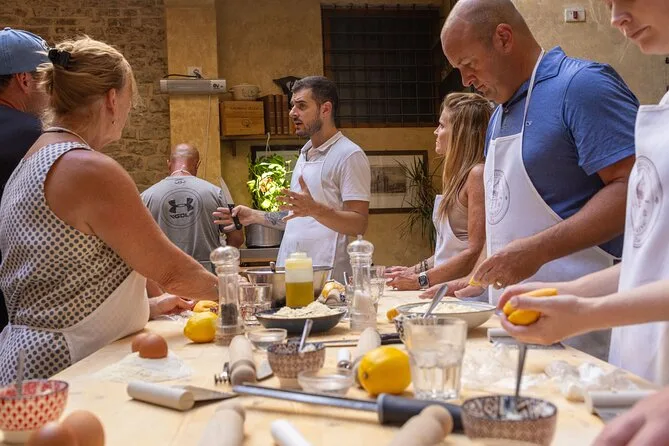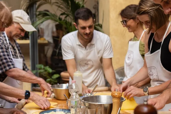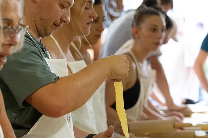 Du betrittst einen Turm aus dem 13. Jahrhundert nahe dem Dom von Florenz für einen praktischen Pasta-Kochkurs mit echten italienischen Köchen. Knete frische Ravioli, Tortellini und Pappardelle von Grund auf, kombiniere sie mit klassischen toskanischen Saucen und teile Lachen (und unbegrenzt Wein) an einem großen Tisch. Ein Nachmittag, an dem Geschichte lebendig wird – und deine Hände schön mehlig bleiben.
