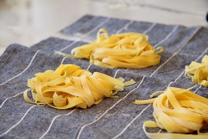 Dein Tag beinhaltet alle Zutaten für frische Pasta und Tiramisu, die Nutzung von Schürzen und Küchenutensilien, Verkostung lokaler Bardolino-Weine während des Kurses, Mineralwasser zum Durchhalten beim Teigkneten (vertrau mir), ein Mittagessen mit deinem selbstgekochten Essen und zum Abschluss einen klassischen Mokka-Kaffee, bevor es wieder weitergeht.