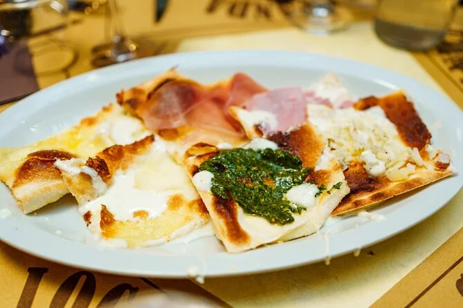 Dein Tag beinhaltet großzügige Verkostungen an mindestens vier Stopps: klassische ligurische Pasta al Pesto, Käse-Focaccia aus Recco, herzhafte Pies aus einer alten Sciamadda, frische Meeresfrüchte an der Madonna Verona-Brunnen sowie Frisceu-Pfannkuchen. Dazu gibt es durchgehend Wasser, ein alkoholisches Getränk bei Wahl, hausgemachtes Eis zum Abschluss und Espresso, bevor es weitergeht – alles begleitet von einem lokalen Guide, der dir spannende Geschichten erzählt, während ihr durch Genuas Altstadt schlendert.