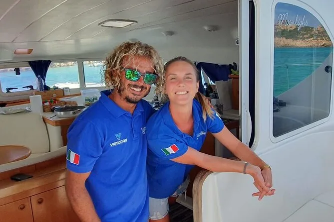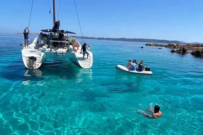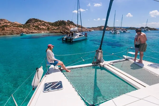 Steig an Bord eines Katamarans in Cannigione und entdecke die wildesten Buchten des Maddalena Archipels – schwimme bei Spargi, gleite an Budellis berühmtem Pink Beach vorbei und genieße an Deck sardische Pasta und Vermentino. Zwischen Badespaß und Geschichten der Crew erlebst du echte Inselgeschmäcker und nimmst mehr mit nach Hause als nur Salz im Haar.