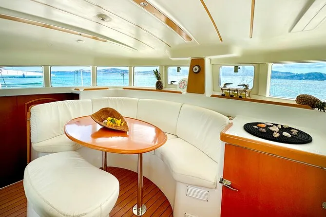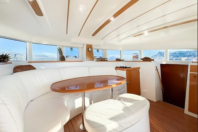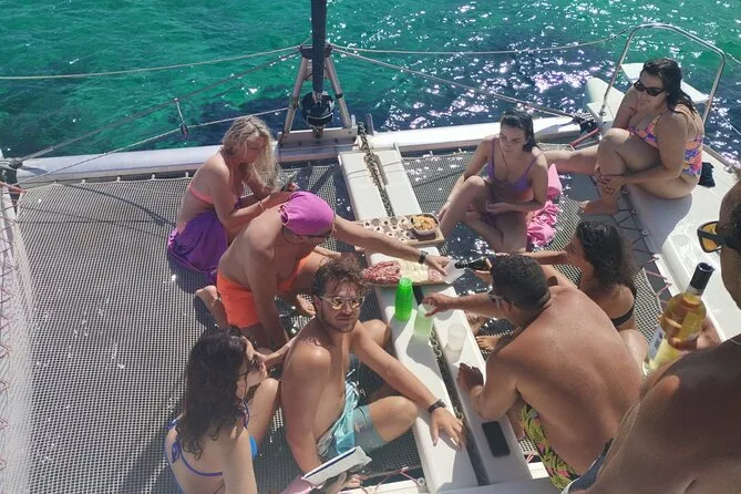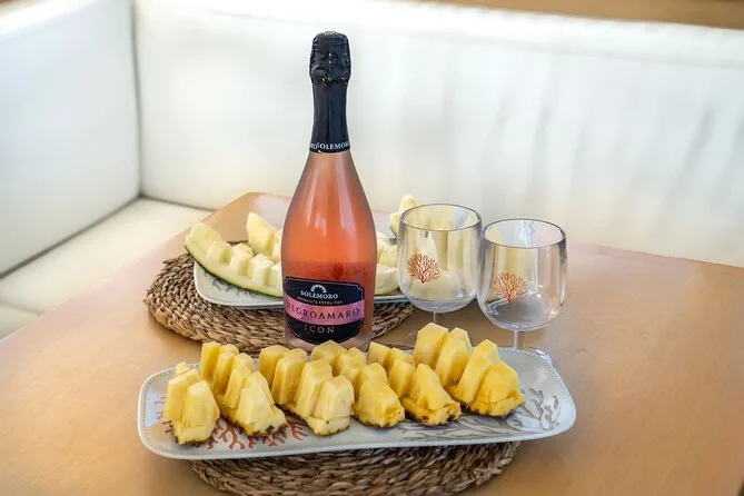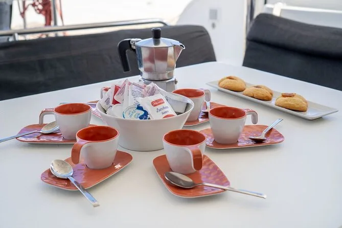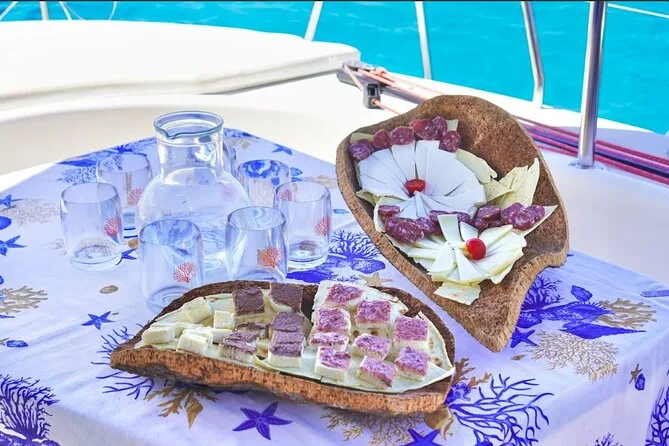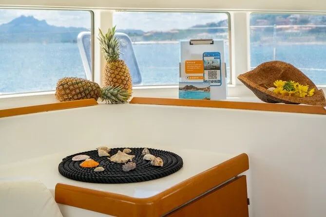 Dein Tag startet am Hafen von Cannigione, alle Navigationsgebühren sind inklusive; Stopps an mehreren Inseln des Maddalena Archipels; Nutzung der Schnorchelausrüstung; Aperitif mit sardischen Spezialitäten; frisch zubereitetes Meeresfrüchte-Pasta-Mittagessen (vegetarische/fischfreie Varianten auf Anfrage); unbegrenzt Vermentino-Weißwein, Bier, Softdrinks und Mineralwasser; frisches Obst; Süßigkeiten; Kaffee oder Tee; plus ein Glas traditioneller Myrthenlikör zum Abschluss am späten Nachmittag.
