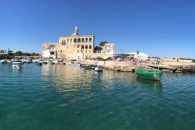 Dein Tag umfasst eine 90-minütige geführte Bootstour ab Polignano a Mare entlang von 10 km Küste, die Nutzung von Schnorchelausrüstung beim Schwimmstopp (je nach Wetterlage), sowie einen italienischen Aperitif mit Getränken und Snacks an Bord vor der Rückkehr zum Ufer.