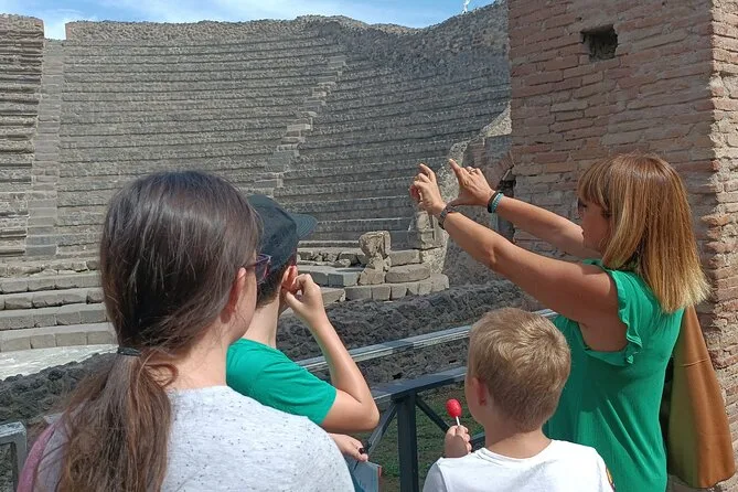 Das Forum wirkte offen und von der Sonne gebleicht, Säulen warfen schlanke Schatten auf die zerbrochenen Pflastersteine. Kinder rannten voraus, um die Überreste von Tempeln und Marktständen zu erkunden. Wir tauchten in eine Domus ein – ein vornehmer Wohnhaus – und gingen weiter zum Gladiatorengymnasium. Unsere Führerin erzählte Geschichten über Trainingsroutinen und Rivalitäten, die alles lebendig und greifbar machten. Und ja, wir kamen auch am Lupanar vorbei – dem berühmten Bordell – dessen freche Fresken nach all den Jahren erstaunlich lebendig geblieben sind.