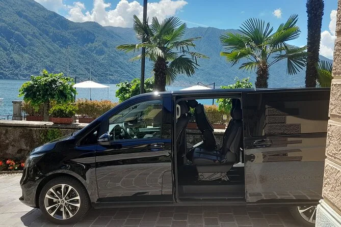 Unser Fahrer wartete bereits im Ankunftsbereich mit einem Schild und meinem Namen auf uns – keine Verwirrung, kein Stress. Das Auto roch dezent nach Leder und frischer Luft. Wir luden unser Gepäck ein (es gibt übrigens Platz für Kinderwagen und sogar für Assistenztiere) und machten uns durch den frühen Morgennebel auf den Weg. Sobald man Mailand hinter sich lässt, hört man, wie der Stadtlärm schnell verstummt – an den Uferstraßen bei Como ist es nur noch leises Gespräch und das Geräusch der Reifen auf nassem Asphalt.