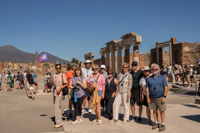 Starte deinen Tag in Rom mit einer entspannten Minivan-Abholung und fahre gen Süden für Kaffee und Frühstück, bevor du Pompejis Ruinen mit einer echten Archäologin erkundest. Danach genießt du die Küstenblicke auf dem Weg nach Sorrent, wo ein reservierter Tisch mit Mittagessen am Meer auf dich wartet. Kleine Überraschungen, lokale Geschichten und Zeit zum Genießen machen diesen Ausflug entspannt und unvergesslich.