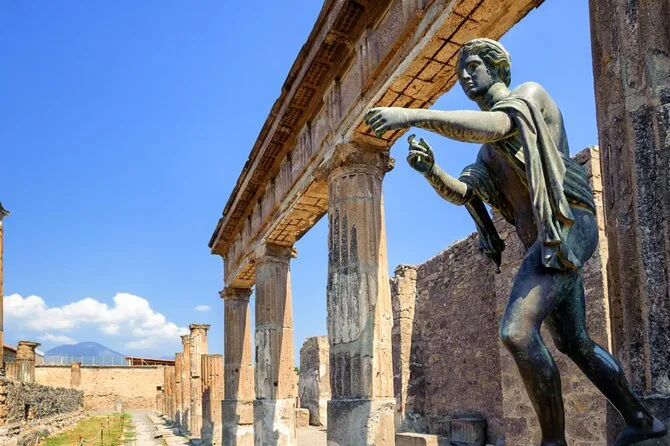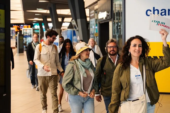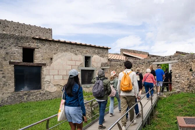 Dein Tag startet am Bahnhof Roma Termini, wo du beim Einsteigen in den Hochgeschwindigkeitszug nach Neapel Unterstützung bekommst. Von dort geht es mit einem privaten Bus direkt nach Pompeji, wo dich dein örtlicher Guide zu einer geführten Tour ohne Warteschlangen durch die Ausgrabungsstätte begleitet. Anschließend erwartet dich ein großzügiges Mittagessen vom Bauernhof mit vier Vulkanweinen in einem familienfreundlichen Weingut, bevor du entspannt per Bus und Zug am Abend zurück nach Rom fährst.