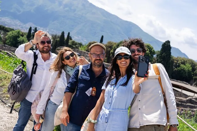 Du fährst mit dem Hochgeschwindigkeitszug von Rom nach Pompeji, umgehst lange Busfahrten und erkundest mit einer lokalen Führung die faszinierenden Straßen der antiken Stadt, die vom Vesuv eingefroren wurde. Genieße Vulkanweine und ein frisches Mittagessen mit Blick auf die Weinberge, bevor es zurückgeht – rundum erfüllt und mit unvergesslichen Momenten. Eine perfekte Mischung aus Geschichte, Genuss und echten Erlebnissen.