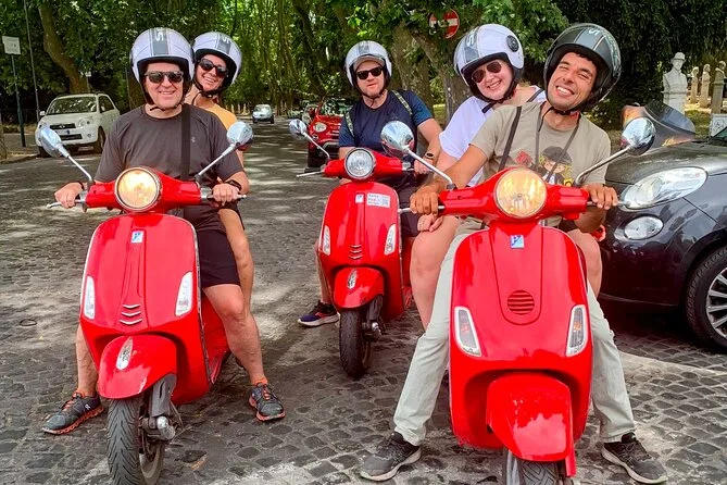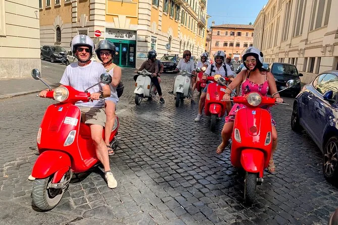 Dein Tag umfasst 2,5 Stunden Fahrt auf einer klassischen roten Vespa durch Rom mit dem zertifizierten lokalen Guide Francesco, der entweder auf seiner eigenen Vespa oder deiner fährt, wenn du möchtest. Helme sind für die Sicherheit inklusive. Du machst Stopps an wichtigen Sehenswürdigkeiten wie dem Kolosseum und dem Trevi-Brunnen sowie an ruhigeren Ecken in Trastevere – mit vielen Gelegenheiten für Fotos und spannende Geschichten, bevor du zum Ausgangspunkt zurückkehrst.
