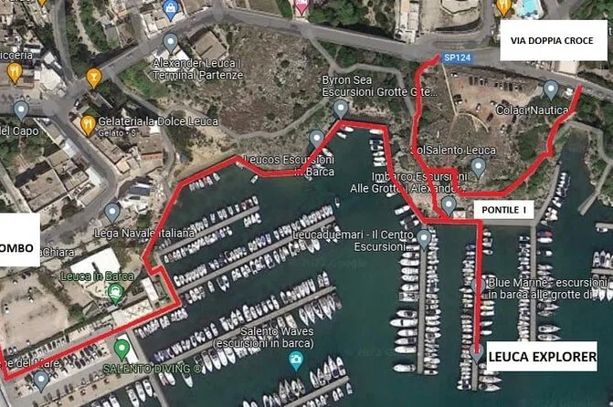 Die Tour startet am Pier i im Touristenhafen von Santa Maria di Leuca.