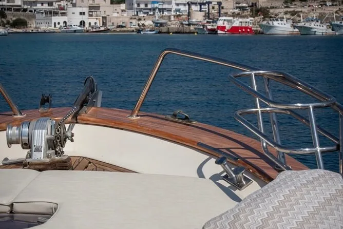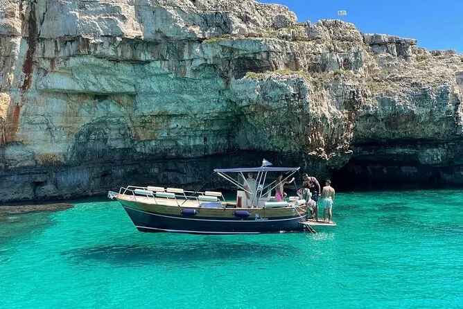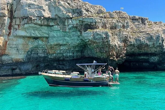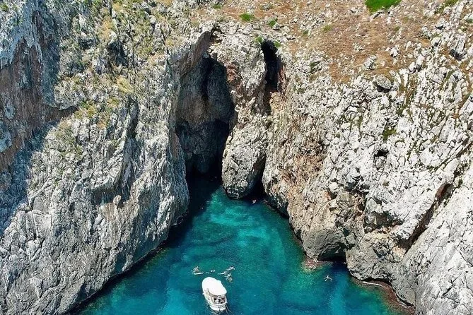 Dein Tag beginnt am Touristenhafen von Santa Maria di Leuca mit Kapitän Mino oder einem anderen lokalen Skipper, der dich entlang der Adriatischen und Ionischen Küste führt; alle Schnorchelausrüstungen sind inklusive, falls du schwimmen möchtest; Schwimmwesten für Erwachsene und Kinder sind vorhanden; nach etwa drei Stunden auf dem Wasser bringt dich das Boot zurück zum Ausgangspunkt.
