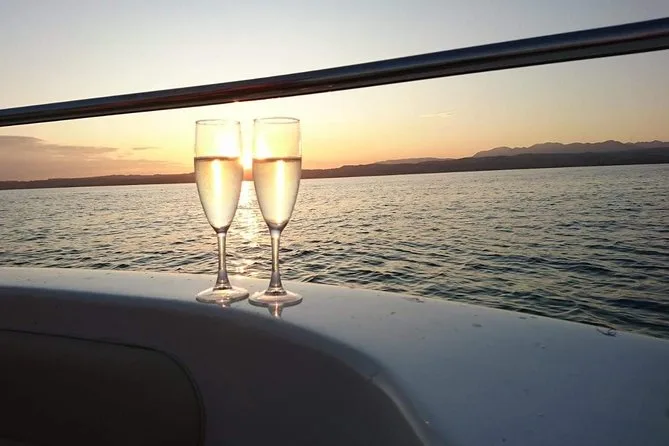 Bei Sonnenuntergang gleitest du mit einem lokalen Guide entlang der Halbinsel von Sirmione, vorbei am Scaliger Schloss und römischen Ruinen, während du an Deck gekühlten Prosecco genießt. Beobachte den Dampf des Aquaria Thermalbads und die Blasen der Boiola Schwefelquelle im goldenen Licht des Gardasees – ruhig, überraschend und so, dass man gern noch länger auf dem Wasser bleiben möchte.