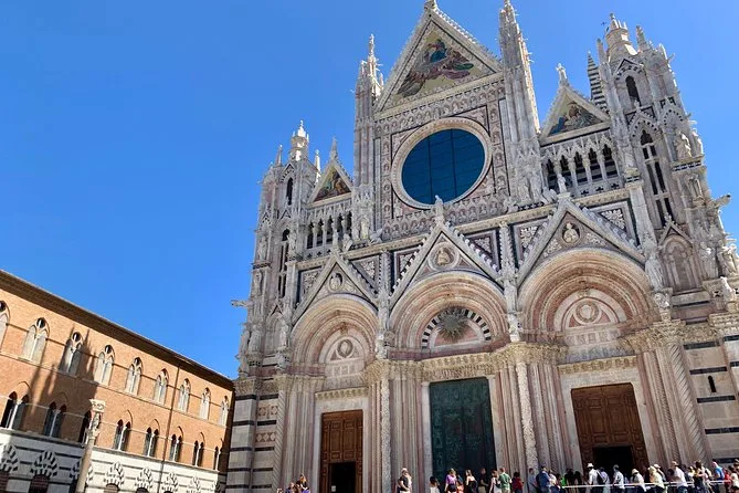 Dein Tag umfasst eine bequeme Abholung im klimatisierten Bus mit WLAN im Zentrum von Florenz; eine geführte Tour durch Siena; freie Zeit in Pisa und San Gimignano; Eintrittsgelder bei Auswahl (inklusive optionalem Zugang zum Schiefen Turm); ein traditionelles leichtes Mittagessen in einem Chianti-Weingut mit drei lokalen Weinen, bevor es abends zurück nach Florenz geht.