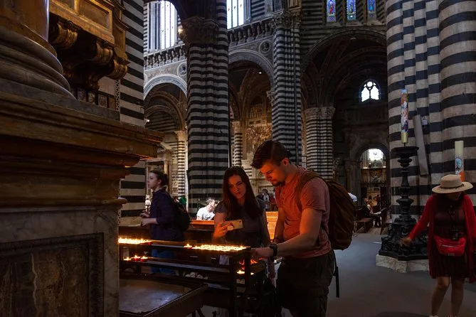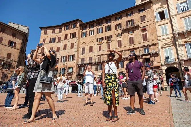 Dein Tag beginnt mit dem Treffen am Bahnhof Santa Maria Novella in Florenz, anschließend fährst du mit dem klimatisierten Bus nach Siena für eine geführte Stadtbesichtigung inklusive Dom-Eintritt; du hast viel freie Zeit in Siena und San Gimignano; ein herzhaftes Mittagessen mit vier lokalen Weinen auf einem Bio-Weingut; alle Transfers zwischen den Orten; und Zeit, Pisastätten zu erkunden, bevor es abends zurück nach Florenz geht.