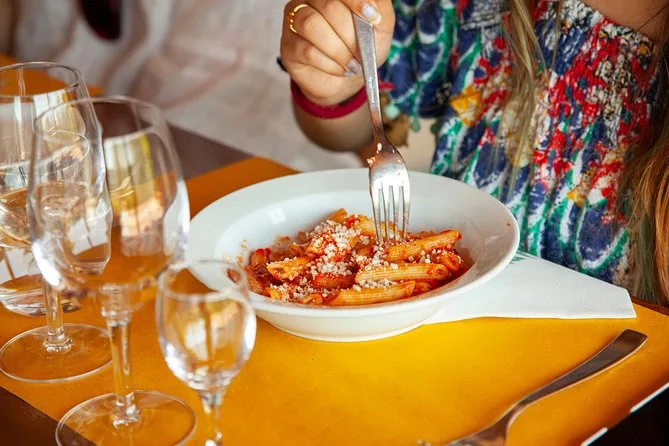Die Fahrt zum Weingut war kurz, aber mein Magen knurrte schon vor Hunger. Die Fattoria Poggio Alloro liegt auf einem Hügel mit Ausblicken, die fast unwirklich wirken – endlose Weinberge, und die Türme von San Gimignano blitzen im Dunst hervor. Das Mittagessen war laut und chaotisch auf die beste Art: hausgemachte Pasta (die Soße schmeckte, als hätte Oma sie gekocht), salziger Prosciutto, würziger Käse und Wein, der immer wieder nachgeschenkt wurde. Wir probierten vier Weine; am besten gefiel mir der Weißwein, dessen Namen ich mir aber nicht merken konnte (Elena versuchte es mir beizubringen, gab dann aber auf). Ich traf ein Paar aus Melbourne, mit dem wir Reisepannen austauschten, während wir Wolken beobachteten, die Schatten über die Felder jagten.