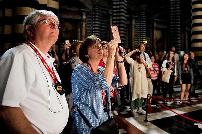 Fast hätte ich die Gruppe an der Santa Maria Novella verpasst, weil ich von einem Typen abgelenkt wurde, der mit seinem Kaffee diskutierte – so sind die Morgen in Florenz eben. Unsere Reiseleiterin Elena winkte mir lachend zu, ganz ohne Vorwurf. Die Fahrt aus Florenz heraus war erst still, alle waren noch halb wach. Ich erinnere mich, wie der Regen gegen die Scheiben trommelte, als wir in die Hügel Richtung Siena fuhren. Elena erzählte von alten Bankiersfamilien und wie Sienas Reichtum durch Pilger entstand. Vor 9 Uhr hätte ich nie gedacht, dass mich mittelalterliche Banken interessieren, aber ihre Geschichten machten alles lebendig – und zwischendurch gab’s noch lokalen Klatsch zum Palio-Pferderennen, der alle zum Lachen brachte.