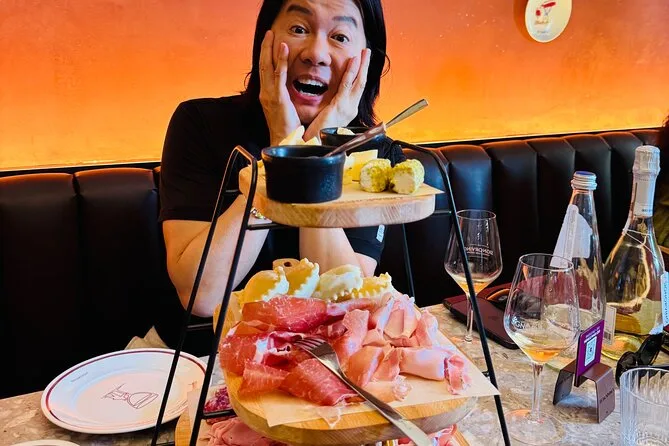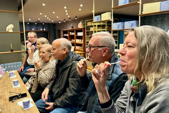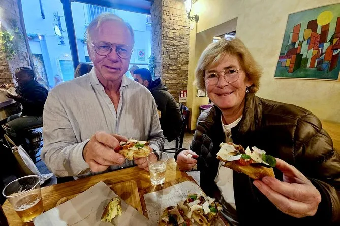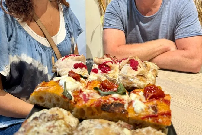 Dein Erlebnis umfasst eine halbstaatliche Führung durch Michelin-Koch Abram oder die kulinarische Erzählerin Cecilia, sorgfältig ausgewählte Street Food Verkostungen von Süßem bis zu preisgekrönter Pizza und Käse- oder Pastagerichten je nach Tageszeit, DOC/DOCG-Weinbegleitung (plus lokale Spirituosen bei Abendtouren), Wasser inklusive sowie entweder ein Mittagessen in einer Weinbar oder ein mehrgängiges Abendessen in einer Familien-Trattoria – vegetarische Optionen auf Voranmeldung.
