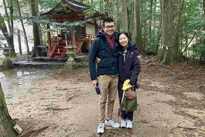 Begleite einen einheimischen Guide auf den uralten Kumano Kodo Pilgerwegen und lausche seinen Geschichten. Erlebe das imposante Torii von Hongu Taisha, den Hayatama Taisha am Flussufer und das donnernde Schauspiel der Nachi-Wasserfälle. Mit privatem Fahrzeug, Abholung und flexiblen Stopps wird das ein Erlebnis, das du lange in Erinnerung behältst – selbst wenn deine Schuhe längst wieder sauber sind.