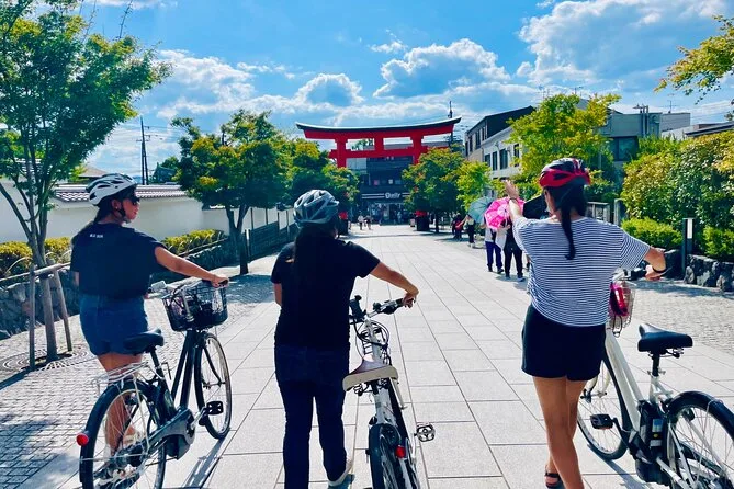 Dein Tag beinhaltet die Nutzung eines E-Bikes und Helms, geführt von einem englischsprachigen Einheimischen, der dich durch Gion, Higashiyama-Tempel, den Fushimi Inari-Schrein und den Tōfuku-ji-Tempel begleitet – inklusive Wasser und Snacks, bevor es auf dem Flussweg zurück zum Start geht.