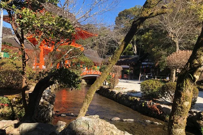 Wir fuhren durch enge Hinterstraßen und hielten bei blühenden Pflaumenbäumen – ich hätte nicht gedacht, dass sie so süß duften. Yuji erzählte, wie dieser Schrein mit Sugawara no Michizane, dem Gott des Lernens, verbunden ist. Ein Flohmarkt wurde gerade aufgebaut; alte Damen ordneten Keramik auf Tatami-Matten, ein Mann briet etwas, das meinen Magen knurren ließ, obwohl es erst kurz nach zehn war. Wenn du einen entspannten Tag in Kyoto suchst, voll solcher kleinen Momente, ist diese E-Bike-Tour genau richtig.