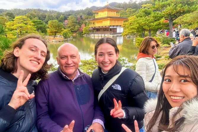 Dein Tag beinhaltet die Busfahrt zwischen Kyotos Highlights mit WLAN an Bord, Eintritt zu Tempeln wie Kiyomizu-dera und Kinkaku-ji, Begleitung durch einen englischsprachigen lokalen Experten (plus Audioguides in mehreren Sprachen) und, falls ausgewählt, ein japanisches Buffet mit Blick auf Arashiyama – alles rechtzeitig vor der Rückkehr am Abend.