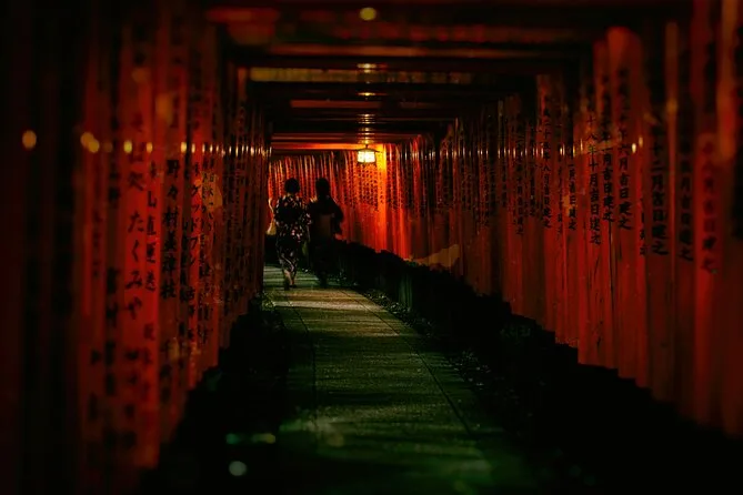 Nach Sonnenuntergang tauchst du bei dieser Tour unter die leuchtenden Torii-Tore von Fushimi Inari ein, geführt von jemandem, der jeden Pfad kennt. Freu dich auf ruhige Laternenwege, spannende Fuchsgeister-Geschichten und die seltene, entspannte Atmosphäre, die viele Besucher verpassen. Hier geht es nicht ums Hetzen – du kannst die stille Seite des Schreins wirklich genießen.