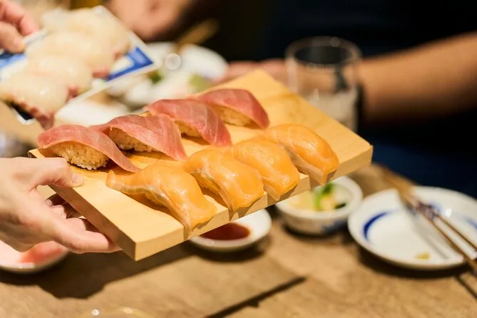 Dein Abend beinhaltet bis zu zwölf einzigartige japanische Gerichte – frisches Thunfisch-Sushi aus einem Spezialgeschäft, knusprige Gyoza, Yakitori-Spieße vom Holzkohlegrill – und drei Getränke in beliebten lokalen Sake Bars, begleitet von einem Einheimischen, der dich durch die Tour führt.