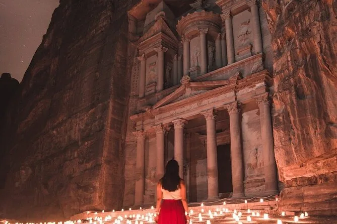 Sie starten vor Sonnenaufgang in Amman, fahren durch wechselnde Wüstenlandschaften und kommen mit Unterstützung bei jedem Schritt in Petra an – vom Ticketkauf bis zu spannenden Geschichten eines lokalen Guides, falls Sie ihn buchen. Durchqueren Sie den Siq, erleben Sie das Schatzhaus, plaudern Sie mit Händlern oder lauschen Sie einfach dem Echo Ihrer Schritte in den steinernen Gängen. Ein langer Tag, der unvergesslich bleibt.