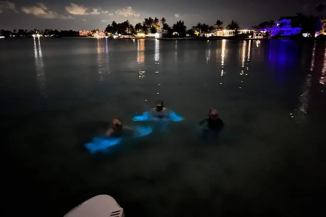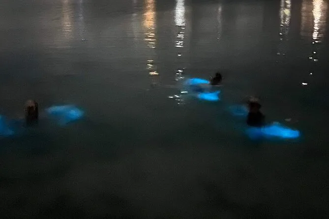 Dein Abend beinhaltet die Nutzung von Schnorchelmasken und Schwimmwesten für das Schwimmen in den leuchtenden Gewässern der Bio Bay; Eiswasser und Kühlboxen an Bord, damit du eigene Snacks und Getränke mitbringen kannst; und die Begleitung durch das lokale Team bei beiden Stopps, bevor es nach Einbruch der Dunkelheit zurück zum Steg geht.