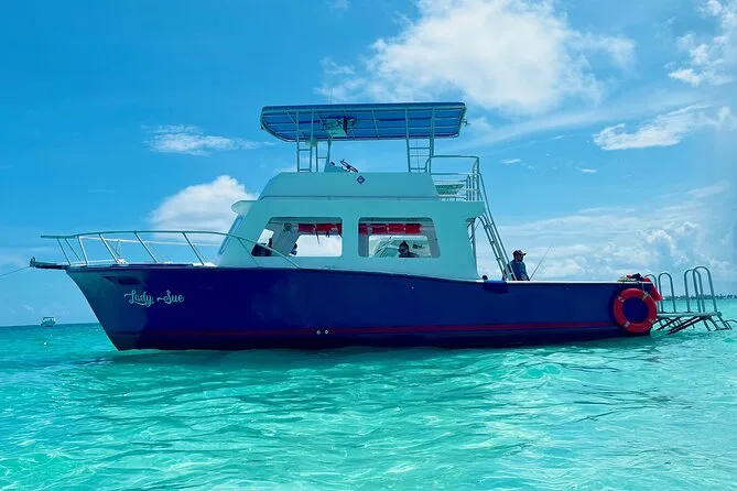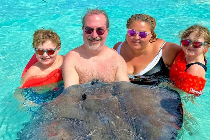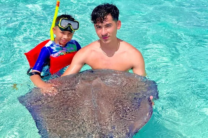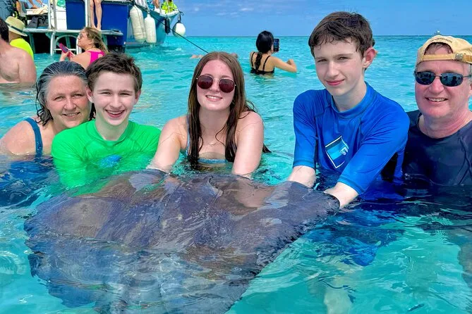 Dein Tag startet mit Abholung am Kreuzfahrtterminal oder Hotel in der Seven Mile Beach Gegend, klimatisierter Transport zur Marina, komplette Schnorchelausrüstung und Schwimmwesten (von Kleinkind bis Erwachsen), Futter für die Stachelrochen in Stingray City sowie Wasser und Softdrinks während der Tour – bevor es zurück an Land geht.
