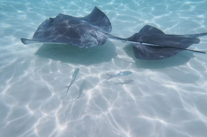 Starte am Hafen von Grand Cayman mit einem lokalen Guide, fahre mit dem Boot zu Stingray City für hautnahe Begegnungen mit wilden Stachelrochen. Schnorchle bunte Korallen im Coral Garden und watet zwischen Seesternen am Starfish Point – alles mit Ausrüstung und ohne große Menschenmengen. Freu dich auf Spaß, Meeresbrise, sanfte Naturmomente und Erinnerungen, die lange bleiben.