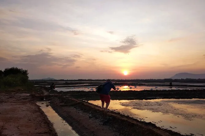 Erkunde Kampots Salzfelder bei Sonnenaufgang, entdecke den alten Höhlentempel mit deinem lokalen Guide, genieße frische Kokosnuss am Secret Lake und koste Krabben direkt vom Markt in Kep. Freu dich auf echte Gespräche, viel Lachen und Einblicke ins tägliche Leben, die lange nachwirken.