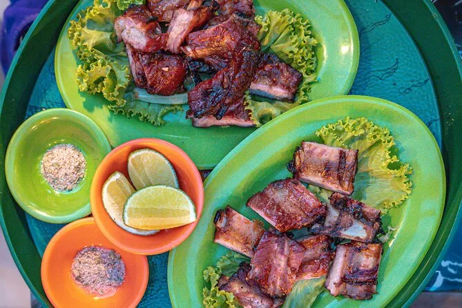 • Langsam geröstete Rippchen und Fischkuchen essen