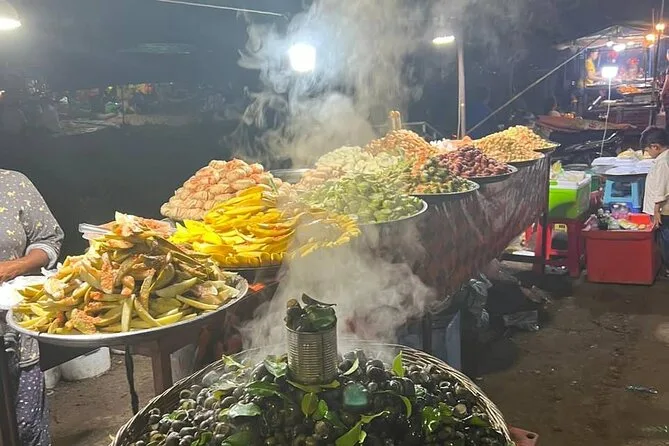 Dein Abend beinhaltet den privaten Transfer mit Hotelabholung in Siem Reap, einen freundlichen lokalen Foodie-Guide, der dich zu zehn handverlesenen Verkostungen (inklusive Getränke) führt, spannende Geschichten zu jedem Gericht und Zeit, die lebhaften Nachtmärkte zu entdecken – bevor es gegen 20:15 Uhr zurückgeht.