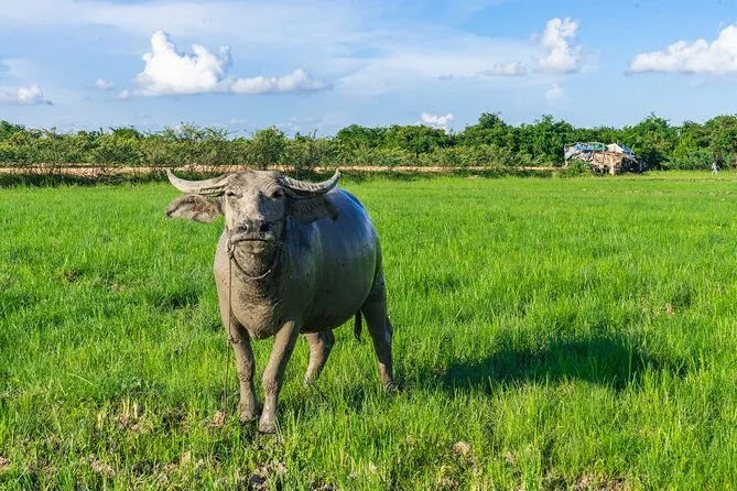 Wer das echte kambodschanische Landleben abseits von Tempeln und Touristenmassen erleben will, ist bei dieser Jeep-Tour genau richtig. Triff Einheimische, probiere Snacks, die du sonst nirgends findest, entdecke ruhige Dörfer und Tempel und genieße zum Abschluss einen kühlen Drink beim Sonnenuntergang über den Reisfeldern von Siem Reap.