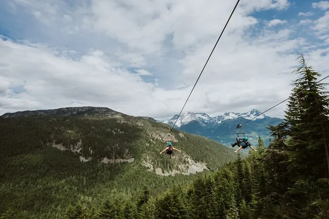 Du fährst mit einem 4x4 den Cougar Mountain bei Whistler hinauf und saust dann mit einem Freund oder Mitreisenden auf vier Ziplines nebeneinander hinunter. Dazwischen kannst du mit den lokalen Guides kurze Pfade durch dichten Wald erkunden. Freu dich auf viel Spaß, ein bisschen Nervenkitzel und atemberaubende Aussichten, die du noch lange nach der Tour im Kopf behalten wirst.